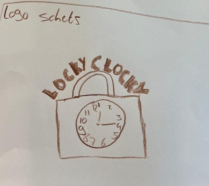 Op de afbeeldingen hieronder zijn de eerste schetsen te zien die we hebben gemaakt tijdens de prototyping fase. We wilden het concept van onze Locky Clocky visueel maken, zodat we beter konden bespreken hoe het product eruit zou moeten komen te zien. In deze schetsen hebben we geprobeerd om het idee van een wekker die je op een manier dwingt om actief te worden duidelijk weer te geven. Het slot-achtige ontwerp van het logo staat voor het ‘locky’ gedeelte, terwijl de klok in het midden van het slot het wekker gedeelte van het product voorstelt. Bij de schets van de wekker zelf hebben we gekeken naar wat de eindgebruiker echt wou en wat wij erin wouden. Hoewel dit toen nog erg ruw was, hielp deze schets ons om het concept tastbaar te maken. Door het tekenen kwamen we erachter welke elementen we belangrijk vinden, zoals de vorm, het sluiting mechanisme en de uitstraling van de wekker. Dit soort vroege prototypes zijn echt heel handig, omdat je dan al een eerste gevoel krijgt van hoe het product eruit kan gaan zien, zonder dat je meteen technisch of moeilijk hoeft te doen.