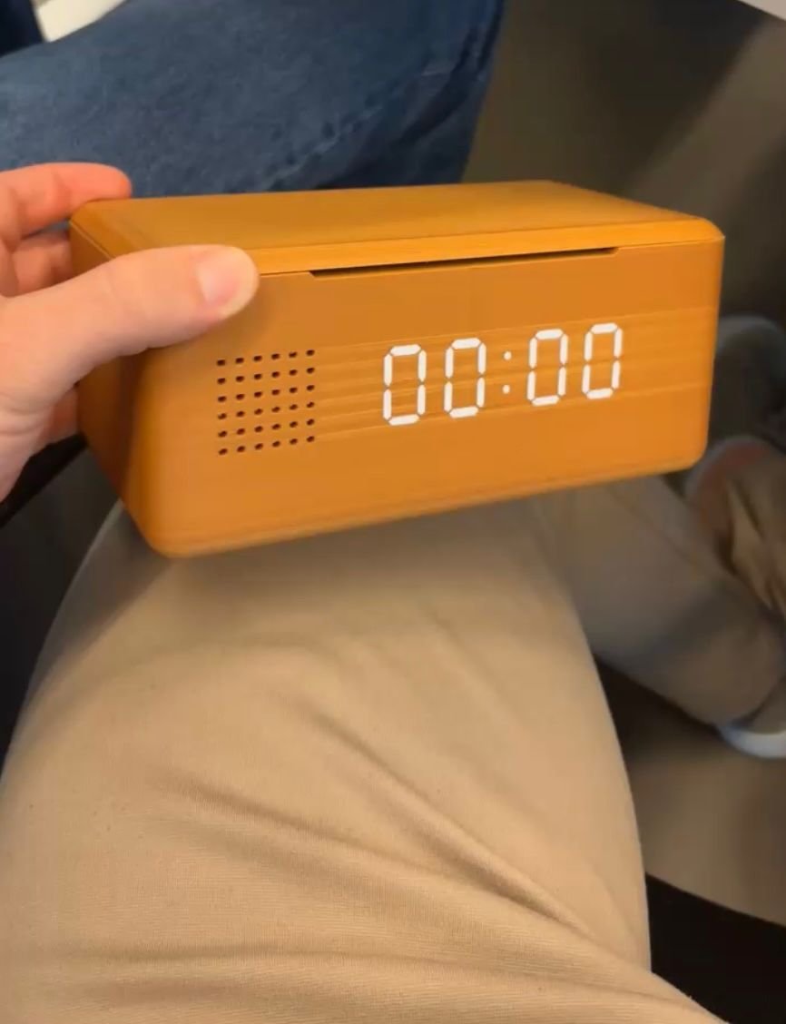 Als ik terugkijk op het gehele project, zie ik duidelijk hoe elke fase heeft bijgedragen aan een concept dat echt aansluit op de behoeften van onze doelgroep. In de beginfase hadden we als groep echt moeite om één duidelijke richting te kiezen binnen het thema gezondheid wat we als groep erg interessant vonden. Maar juist doordat iedereen toch wel een andere invalshoek had, werden we wel gedwongen om kritisch te onderzoeken welk probleem het meest relevant was. Het onderwerp slaap trok mij persoonlijk meteen aan, en door mijn eigen ervaring met overmatig telefoongebruik voelde ik direct betrokkenheid omdat ik direct de connectie legde tussen slaap en mijn telefoongebruik. Dit persoonlijke inzicht werd bevestigd door erg veel deskresearch, telefoongebruik rond bedtijd heeft aantoonbaar negatieve effecten op slaapkwaliteit. Deze combinatie van eigen ervaring en onderzoek legde een sterke basis voor onze probleemstelling. Bij het bepalen van de doelgroep en het formuleren van de onderzoeksvraag werd al snel duidelijk dat vooral young professionals last hebben van een combinatie van slechte slaap en een te hoge schermtijd. Door interviews en gesprekken te voeren met deze doelgroep kregen we hele concrete inzichten in hun pijnpunten. Deze pijnpunten waren moeite met concentreren overdag, onrust door meldingen en de gewoonte om ’s avonds lang op hun telefoon te blijven hangen. Deze inzichten zorgden ervoor dat onze onderzoeksvraag niet alleen logisch was, maar ook echt gebaseerd op wat onze eindgebruiker nodig heeft. Tijdens het ontwikkelen van ons concept werd dit nog duidelijker. We begonnen heel breed, met brainstormsessies waarin ikzelf veel verschillende ideeën opperde, niet alleen rondom telefoongebruik, dit ging van geurdispensers tot verzwaringsdekens. Maar telkens koppelden we onze ideeën terug aan de inzichten die we op hadden gedaan uit interviews, de focus groep en deskresearch. Daardoor vielen sommige opties af, omdat ze niet direct inspeelden op het kernprobleem. Dit was de verslavende werking van de telefoon in de avonduren. Toen het concept van een wekkerkluis werd genoemd, vielen alle puzzelstukjes wel samen. Dit idee sloot wel exact aan op het probleem wat wij als groep beseft hadden, gebruikers die hun telefoon ’s avonds uit handen moeten krijgen en daardoor beter kunnen slapen. Tijdens de ontwerpfase werd wederom bevestigd dat we als groep op het goede spoor zitten. Door meerdere prototypes te maken van ons product, van simpele schetsen tot een functionele mock-up, hiermee kregen we hele waardevolle feedback van de doelgroep. Zij gaven aan hoe groot de kluis moest zijn, welke functies hierbij noodzakelijk waren zoals dat de wekker betrouwbaar was en een laadfunctie, en welke elementen ze minder nodig vonden. Met elke iteratie maakten we keuzes die steeds terug te voeren waren op onderzoek en gebruikersinput. Zo werd de Locky Clocky niet alleen een heel logisch concept, maar vooral een oplossing die direct voorkomt uit echte behoeften, pains en gains van young professionals. Uiteindelijk kijk ik samen met de projectgroep met erg veel tevredenheid terug op dit lange project. We hebben een concept ontwikkeld waar we allemaal volledig achter staan en dat niet alleen erg goed onderbouwd is met onderzoek, maar ook praktisch toepasbaar is en aansluit op een probleem dat veel voorkomt. Ik heb geleerd hoe belangrijk het is om onderzoek voortduren te koppelen aan ontwerpkeuzes, en hoe waardevol het is om eindgebruikers constant actief te betrekken in elke stap. Het proces heeft mij niet alleen nieuwe inzichten gegeven, maar mij ook laten zien dat je met een goed onderbouwd idee waar je echt een vorm van passie voor hebt ontwikkeld echt iets kunt vormen wat impact maakt. De Locky Clocky voelt voor mij dan ook als een sterk en logisch eindresultaat van een project waarin voor mij bijna alles klopte, van probleemstelling tot ons laatste prototype.