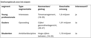 Hieronder is een tabel gezien rondom de segmentatie van het STP-model.